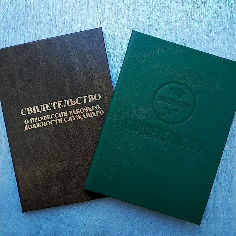 Традиционное жесткое удостоверение. Изготавливается из переплетного картона, покрытого бумвинилом. «Плоское». Внутри от 2 до 20 стр. выклейки.